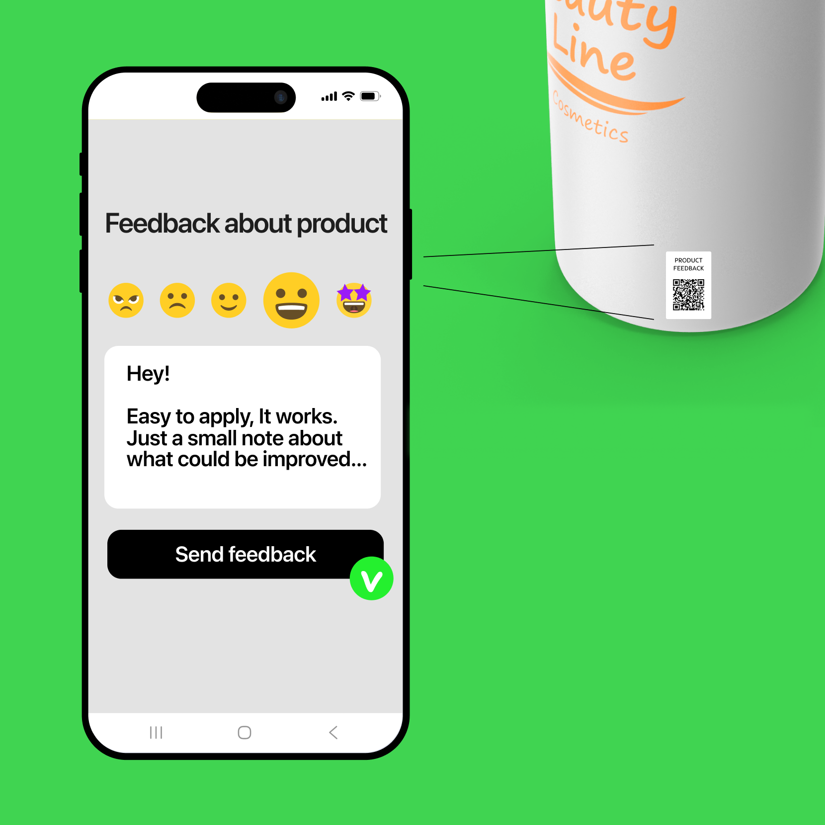 When someone scans your code, they’re directed to a page with feedback form where they can rate product or service using 5 emojis and free text field.