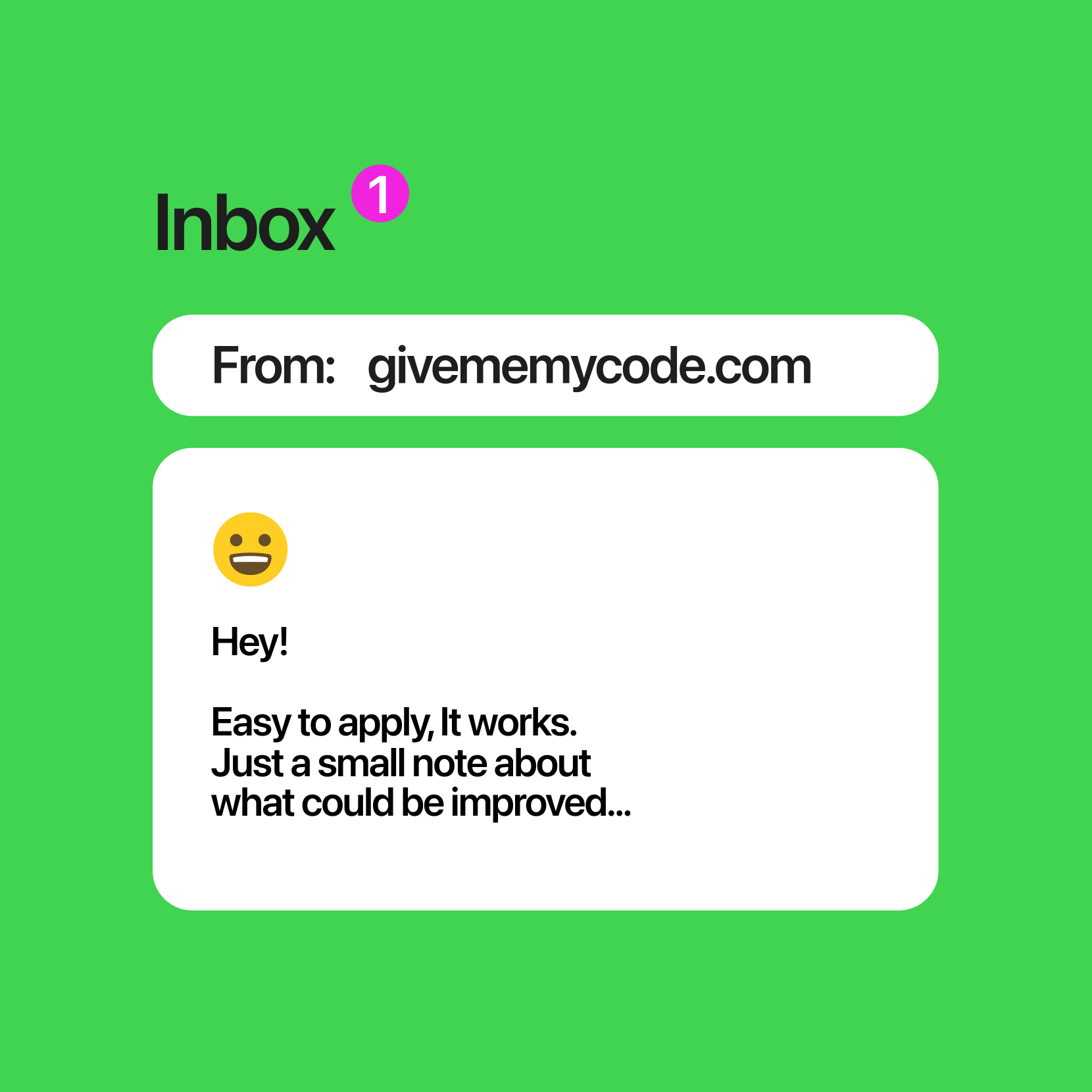You will immediately receive an email from givememycode.com with information that has been filled out in the form.